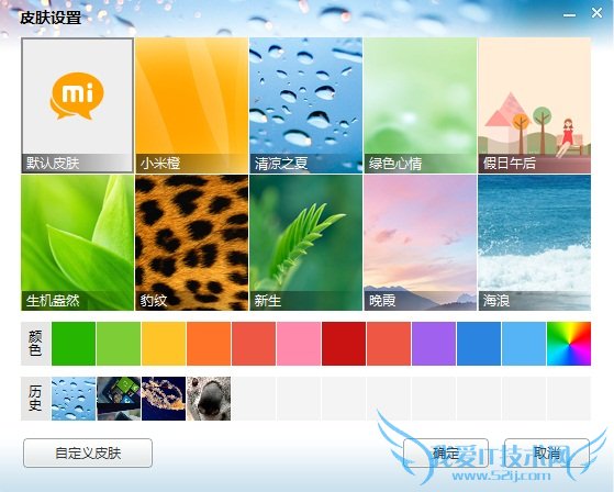 如果觉得PC版米聊默认的Mac风格太单调了你可以点击主界面右上角的最小化按钮旁的“更换皮肤”按钮来更换主界面以及聊天背景,PC版米聊默认提供了多种皮肤——包括小米橙、清凉之夏、绿色心情等等,如果不喜欢图案的话,也可以选择直接以纯色进行填充。