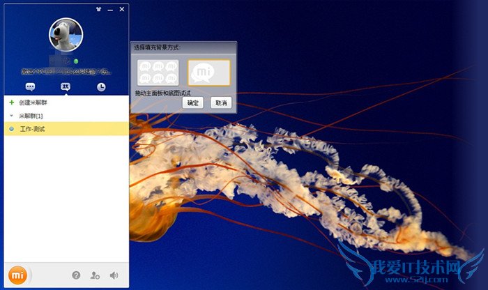 PC版米聊还支持自定义皮肤功能,你可以直接将想要更换的图片拖动到主界面的背景处更换或者是在“更换皮肤”中的自定义皮肤中选择图片进行更换,当选择好一张图片后(默认可以选择两种填充方式),你可以拖动主面板或者背景截取某一部分图片作为皮肤。