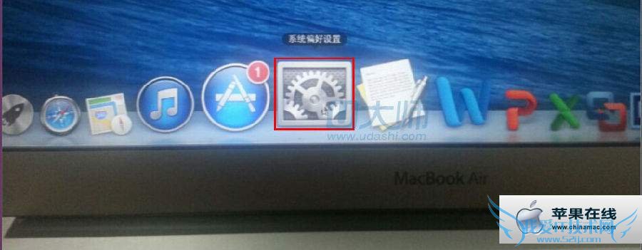 1、在苹果笔记本mac os系统里点击“系统偏好设置”: