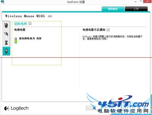 4、怎么看电量呢?在左上角的型号旁边,就会有电量显示,也可以点左侧图标的最后一个,打开后会看到,系统对电池的评价,如图所示,当电量不足时,会自动提醒。