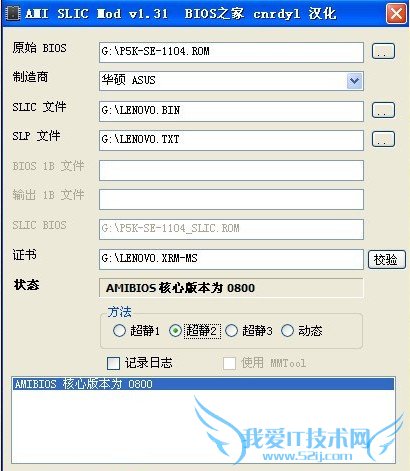 1、准备好相关的文件和工具后,最好先备份BIOS,将相关工具和文件放在同一目录中,打开刷BIOS工具(AMI 的BIOS双击SLIC.exe文件,Award的BIOS双击AwardTool_cn.exe文件,这里以AMI为例,相关工具和文件都放在G盘根目录),按照对话框选项载入相关文件,如图: