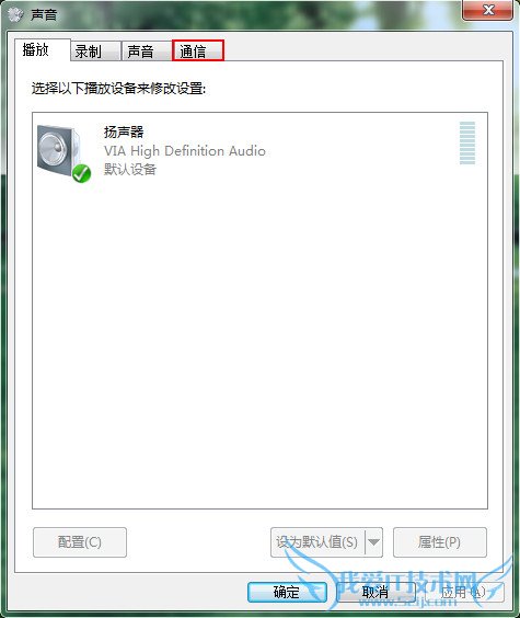 2、进入声音界面后,选择“通信”页面进行设置,如下图所示:
