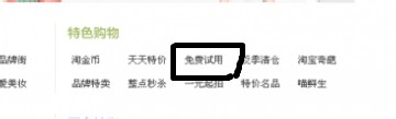 2:在淘宝主页轮播图片的下面找到特色购物,选择里面的免费试用,点击打开
