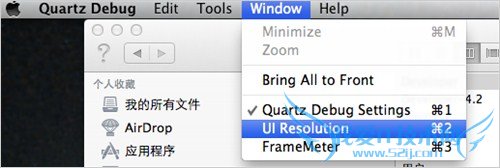打开Quartz Debug顶部工具栏的Windows菜单下的UI Resolution功能,在弹出的对话框中,打开“Enable HiDPI display modes”模式。