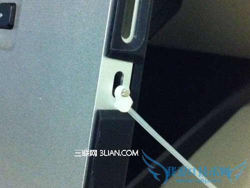 Step.3 把绳子上的小磁铁靠近机身侧面 Kensington 防盗锁孔附近,吸上去。