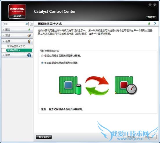 欢迎您访问我爱IT技术网,今天小编为你分享的电脑教程是日常使用电脑方面的电脑常识:标配AMD双显卡笔记本机型双显卡切换方法,学会并运用这些电脑常识,让你快速玩转电脑及互联网方面的知识,下面是详细的分享!
