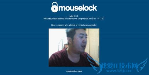 当别人动自己的笔记本的时候,就会要求输入安全码,如果输入错误,或者选择的速度慢,Mouselock网站就会自动启动笔记本自带的摄像头,然后把使用笔记本的人拍下来,并发送到指定的邮箱中去,且还会附带上具体的时间信息(如图所示)。有照片,有时间,对方想要抵赖都不行。