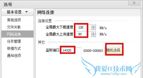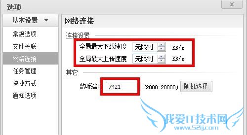 在风行网络电视“基本设置”中,我们看到“网络连接”项,总共有三个方面可以由用户来设定的基本项。如上图所示,红色的方框标出部分。