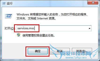 1.使用组合快捷键win键+r键打开运行对话框,输入services.msc回车打开注册表。如下图所示