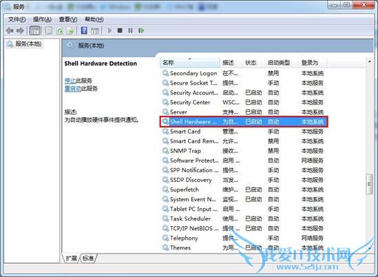 2.从弹出的服务界面右侧找到“Shell Hardware Detection”选项,双击打开。如下图所示