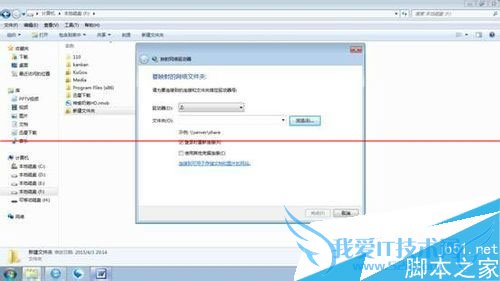 4、驱动器号,选择一个上去,文件夹:找出刚刚共享的文件,如图: