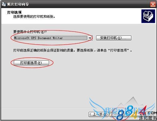2.再“下一步”之后,在打印机选择下拉菜单中选择“MicrosoftXPSDocumentWriter”,若要在打印文档之后使用XPS查看器来查看文档,则单击“打印首选项”的“XPS文档”选项卡,然后确保选中“自动使用XPS查看器打开XPS文件”复选框。