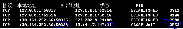 再通过命令 netstat 发现ftp.exe在自己电脑上原来端口就不是21。。