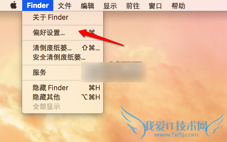 第一步、点击苹果Mac桌面顶部 Finder 图标,菜单中点击选择“偏好设置”
