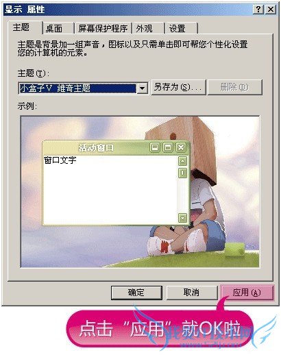 如图:点击“应用”按钮后稍等几秒钟后就可以使用主题啦