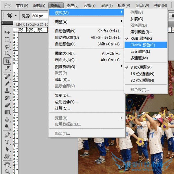二、用photoshop来进行RGB->CMYK的模式转换并预示需要印刷的图片色彩: