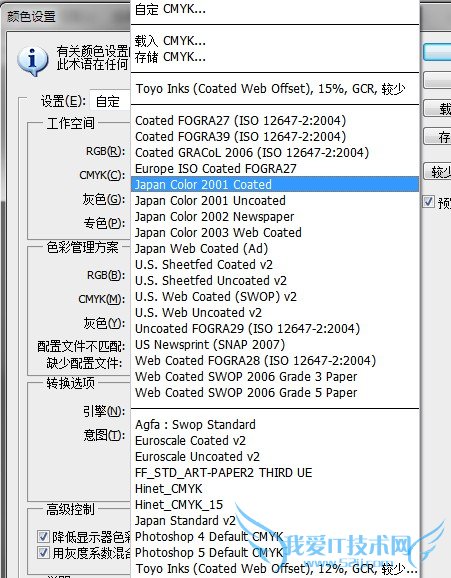 因为国内的大多数印厂使用的设备材料和印刷控制理念都是源于日本的标准,所以在得不到合作印刷厂的色彩转换数据的前提下,采用日本的特性曲线相对靠谱一些。共有五组Japan开头的数据可选。