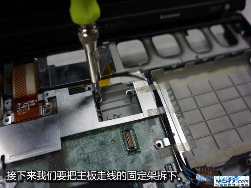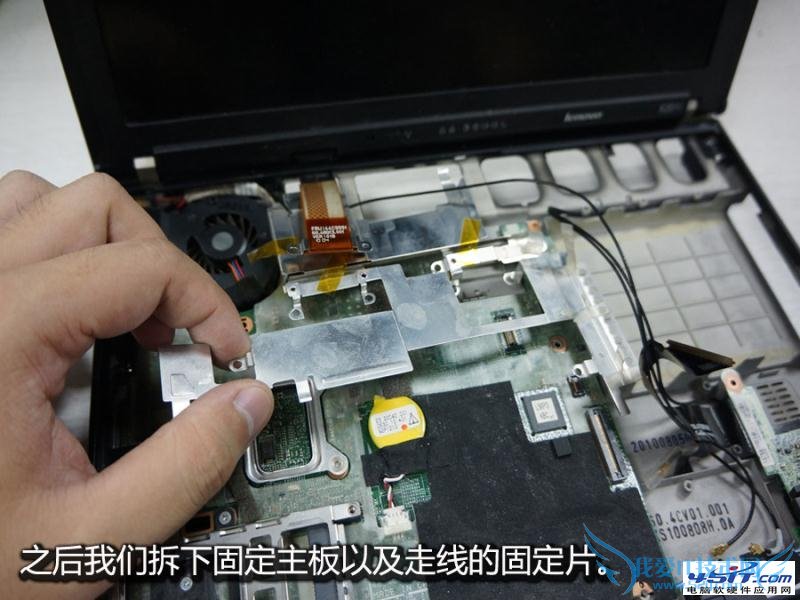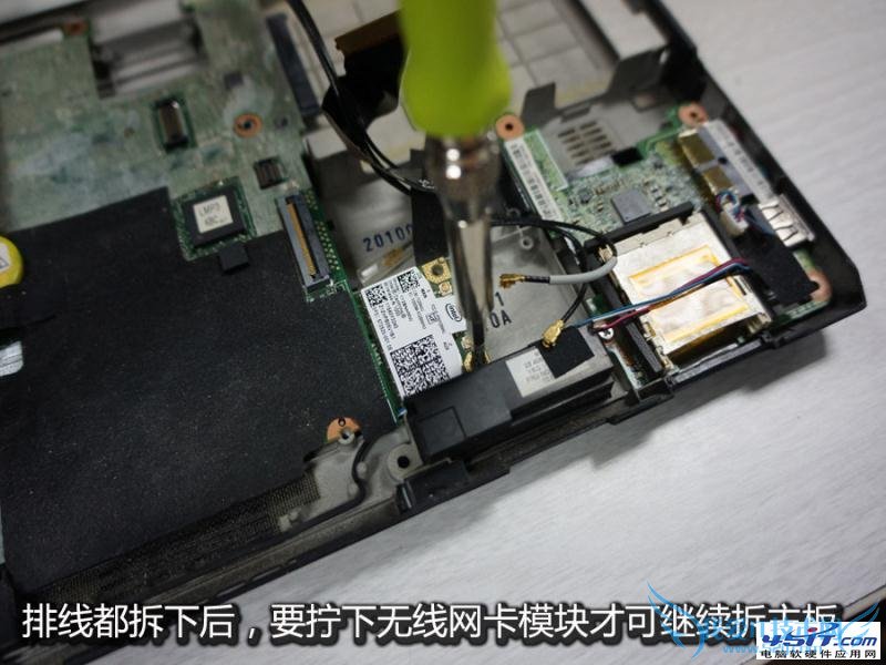 由于无线网卡固定着主板的一角,所以也要一起拆卸来。