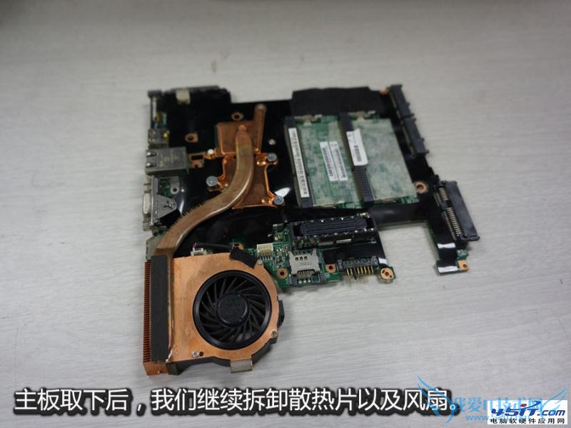 主板被取下后,我们就可以 继续拆卸散热风扇进行更换风扇的工作了。