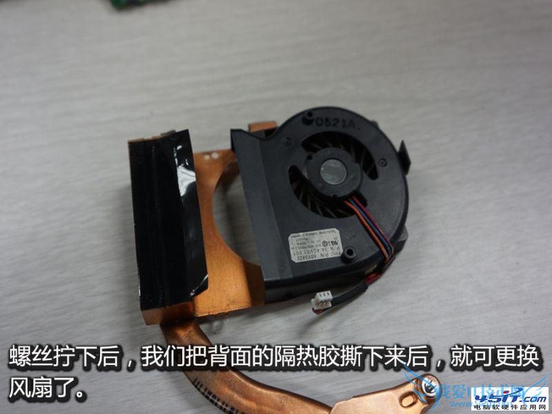 拧松螺丝后,我们把背面的隔热胶撕下来,就可以把新的风扇安上了。