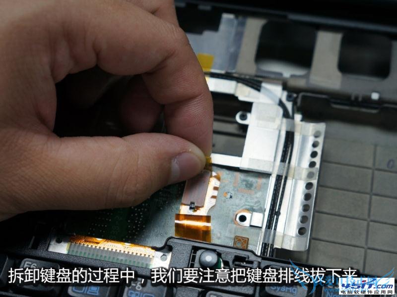 拆卸键盘的过程中,我们要注意把键盘排线取下来。