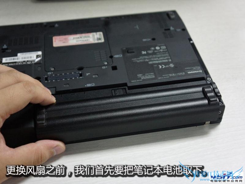 在更换风扇之前,我们首先要把笔记本的电池取下。