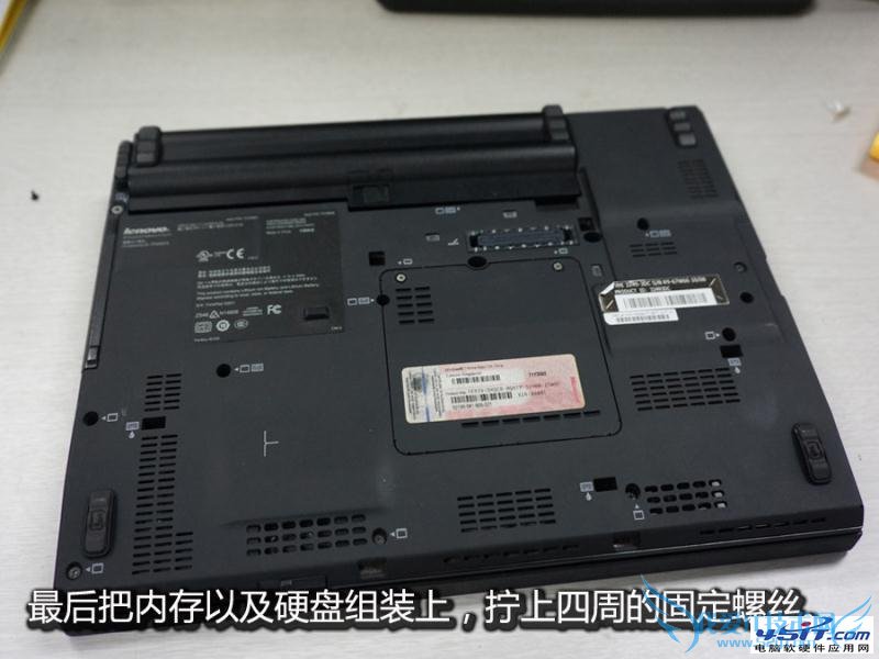 最后把内存、硬盘以及电池组装上,拧上四周的固定螺丝即可。