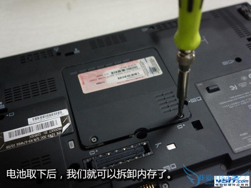 电池取下后,我们就可以开始拆卸内存了,首先要把内存外壳拆下。