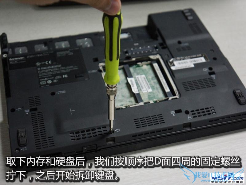 电池、硬盘、内存都取下之后,我们用螺丝刀把D壳周围的螺丝你拧下,之后就可以开始拆卸键盘以及外壳了。