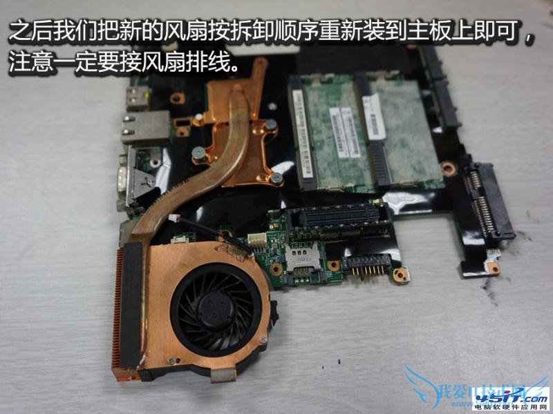 之后我们把新的风扇按拆卸顺序重新装到主板上即可,注意一定要接风扇排线。