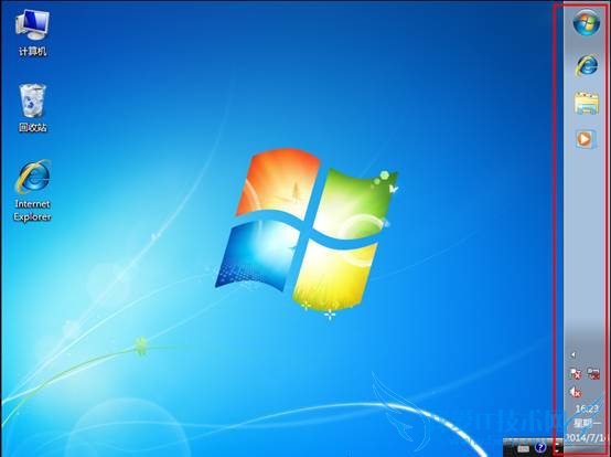 3.鼠标移动到任务栏上,常按后可以直接将任务栏拖到右边,使其显示在桌面的右边