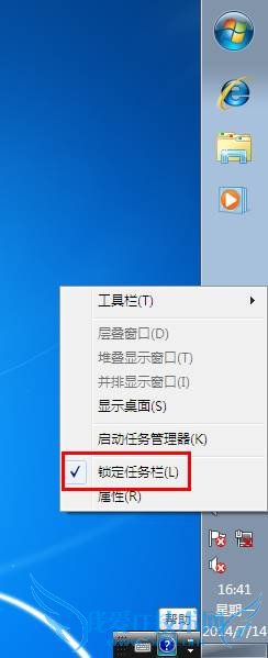 4.调整完宽度和位置后,右击任务栏,勾选“锁定任务栏”,就能保存修改了。