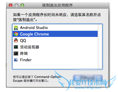 1、方法1: 我觉得最好得办法,按下快捷键:Command+Option+Esc来打开“强制退出应用程序”的窗口,然后选中你需要退出的程序,再点右下方的“强制退出”即可。