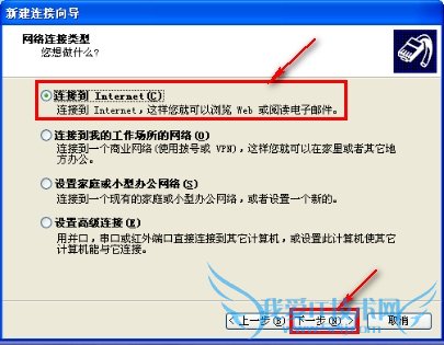 4. 左键点击“连接到Internet” --->左键点击”下一步”按钮,如下图:
