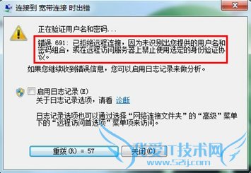 故障点四:如果是ADSL拨号上网方式,输入用户名和密码点击连接后报错,根据具体报错代码查看下面连接帮助解决(Windows XP、Windows7都适用):