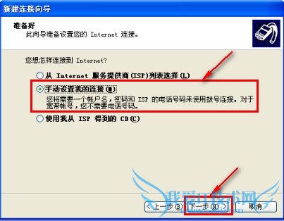 5. 左键点击“手动设置我的连接”--->左键点击”下一步”按钮,如下图: