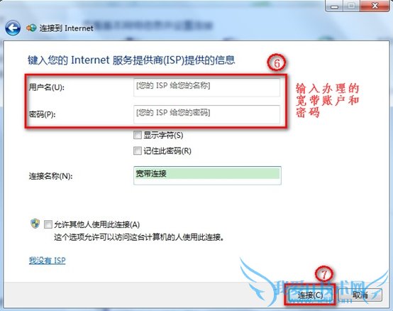 5. 输入“宽带账号”和“宽带密码” --->左键点击“连接”,如下图:
