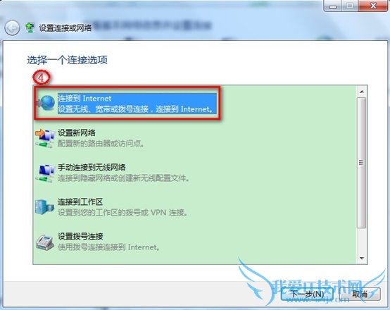 3. 左键点击“连接到Internet” --->左键点击“下一步”,如下图: