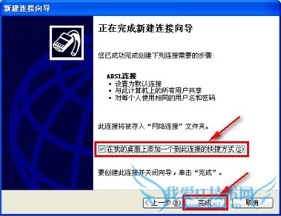 9. 左键点击“在我的桌面上添加一个到此连接的快捷方式” --->左键点击“完成”按钮,如下图: