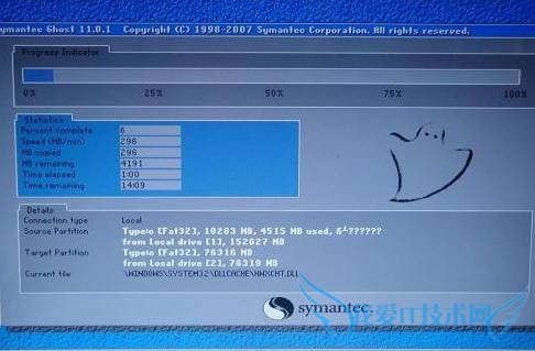 这时候系统会自动进行装配,人们在随后的窗口中可以看到系统装配的程度,当程度达到100%的时候,证明系统已经成功装配。