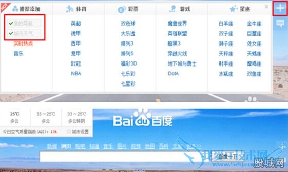 添加导航网站的方法:点击百度首页右侧的“添加”按钮。然后在打开的窗口中点击“我的导航”和“城市天气”两项内容,则这两项内容被添加到当前百度首页当中。如果此时发现导航栏部分消失了,则通过点击百度网页窗口右上角的“新版首页”按钮将页面切换至新版。