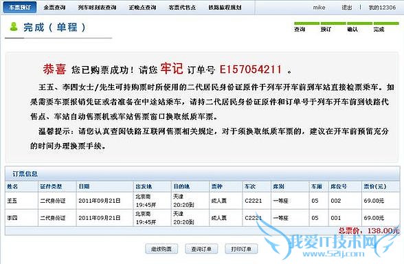 网上预定成功了,要记住订单信息。还是要到车站售票大厅,或者火车票代售点去换票。