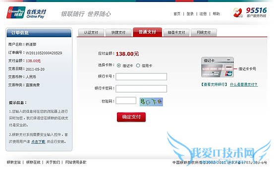 网上订火车票流程第九步——付款
