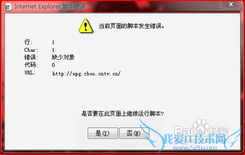打开CBox或切换直播节目的时候,经常发生提示脚本错误: