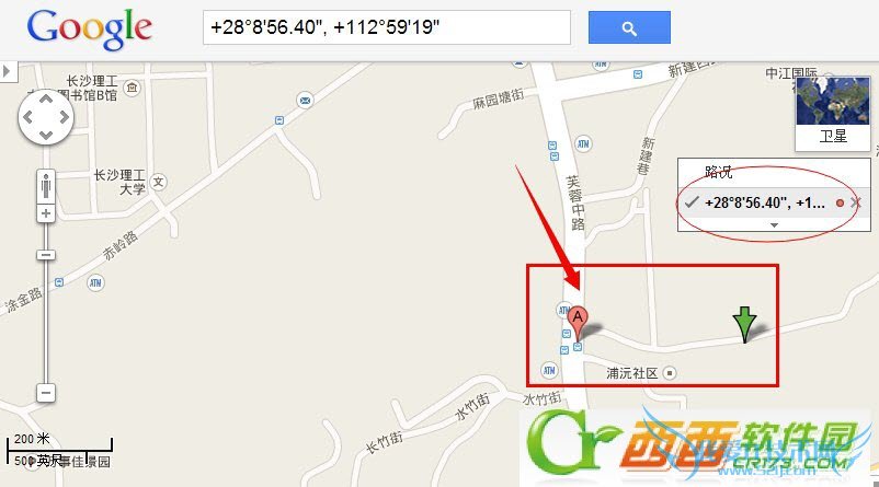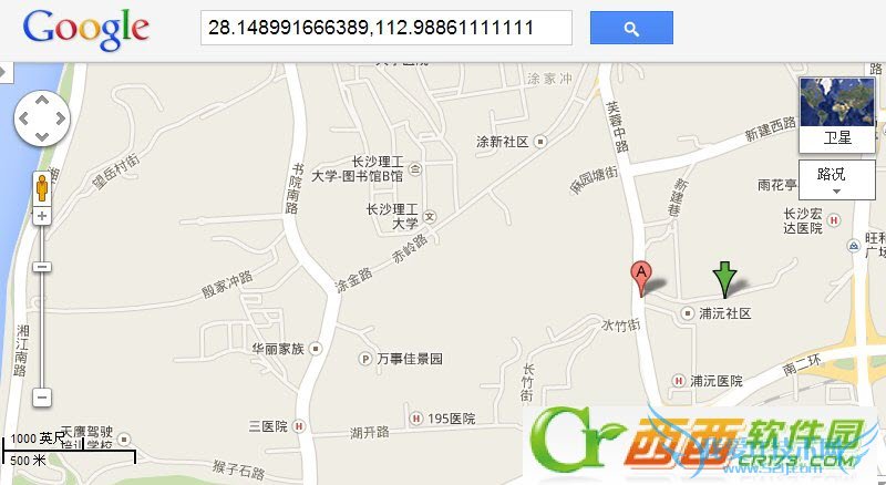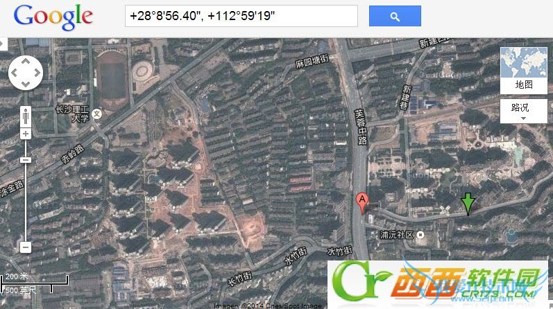 把28.148991666389,112.98861111111 粘贴到谷歌地图搜索框,如下图: