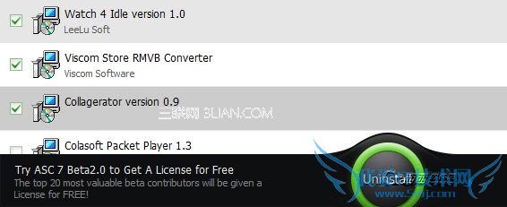 勾选要删除的文件后,按下绿圈里的“uninstall”就开始删除了