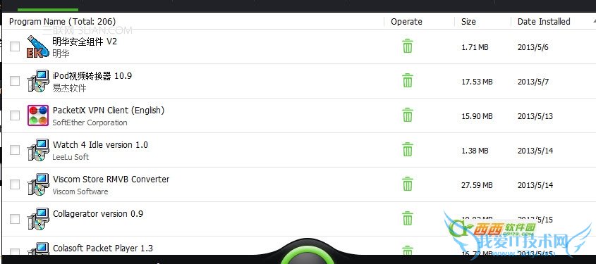 这一排是软件列表,有软件的名字,大小,安装日期等数据。