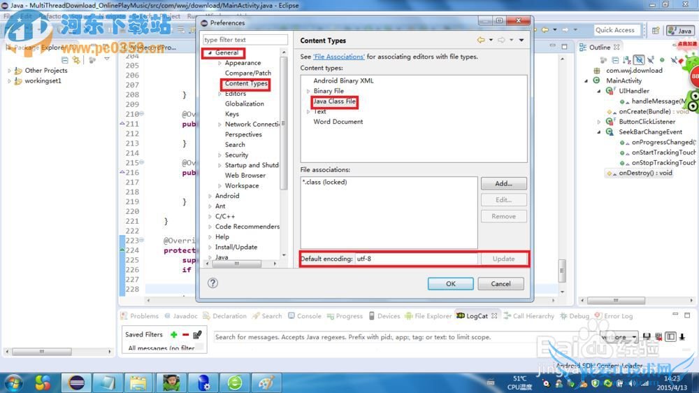 1.window->preferences->General->Content Types菜单右边:Java Class File的Default encoding修改成utf-8;