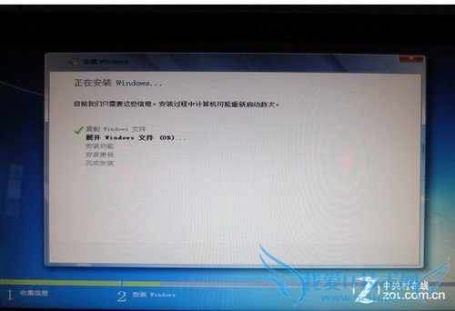 使用打造的系统U盘启动电脑,根据安装程序提示一路点击下一步,注意过程中选择高级安装,在安装分区中选择主分区,就可以顺利完成系统安装。在SSD上安装系统超快,比GHOST版安装慢不了多少:
