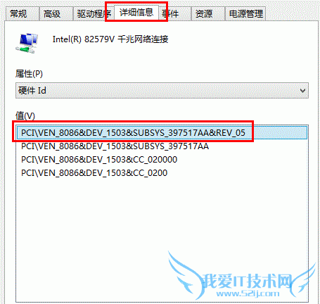 (2) 找到“详细信息”,在属性选项中选择“硬件ID”选项;